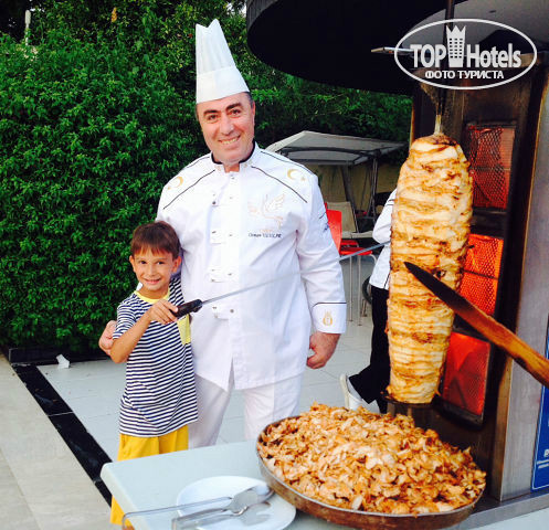 Попали мы с Давидом на турецкую ночь. Столы ломились от яств, отель был украшен шариками, с удовольствием посмотрели турецкие народные танцы и потанцевали сами.