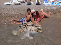 Всем новым гостям Сириуса с маленькими детьми хочу сказать: выбирайте этот отель, Вы будете довольны, и вернетесь в него вновь и вновь. Если кому-то будет интересен мой опыт , то: плавать деткам в бассейне лучше без надувных нарукавников- да, Вам, придется неотлучно быть рядом с ребенком в воде, но так он будет чувствовать и свои руки, и скорее научиться держаться на воде. Когда ребенок маленький -4, 5 лет- берите на пляж ведерко, грабельки, краски для камешков, еще мы строили замки и искали ракушки. Когда ребенок подрос: в прошлом году на ура шел надувной круг, а в этом году круг совсем не котировался, плавал внук в море на матрасе. Все стрелялки, которые в изобилии продаются вокруг отеля: стреляйте - поливайте около бассейна, на море, сразу забиваются мелкими камешками, и навсегда выходит из строя (вот горе -то).