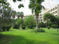 Отель небольшой. Нельзя сказать, что утопает в зелени, но очень симпатичный. Есть основное 5-ти этажное здание и один ряд одноэтажных бунгало вдоль одной из границ отеля. Два бассейна: один большой, один (примыкающий к нему) детский, горок нет. Теннисный корт, он же баскетбольная площадка. Детская площадка когда-то была таковой, сейчас заросла и не используется. Один ресторан: основная часть внутри здания, плюс открытая терраса (есть еще один зал на втором этаже, но он не был задействован). Два бара: один около бассейна, другой на пляже. Ну вот, собственно и все. Так как народа не очень много, то территории хватало всем (скученности не наблюдалось)