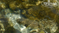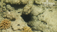 Ехать с маленькими детьми сюда нет смысла вообще, хотя таковых было много. Смысл приехать на море и проторчать весь отдых около бассейна с хлоркой?! Сюда надо ехать, если ты планируешь активно заниматься снорклингом или дайвингом и если вам, как моему мужу, нравится всякая морская живность, кишащая на мелководье во время отлива (в прилив она не так заметна) - морские звёзды, морские ежи, различные виды крабиков ну и, конечно, рыбы. Осторожно - видели несколько раз на мелководье мурен, хотя говорят если их не трогать... Пляжа как такового нет, т.е. в его классическом понимании - белый песок, накатывающая волна... Чтобы поплавать по-человечески надо идти по длинному понтону, спускаешься по лестнице, предварительно надев маску с трубкой - и любуйся на красоту подводного мира, рыбы просто замечательные, глубина метров 20. На потноне всегда присутствует спасатель. Но это если не будет шторма - в противном случае понтон будет закрыт, а это случалось там довольно часто (месторасположение такое - там сёрфингом раньше занимались) и тогда приходилось топать назад к бассейну. Души, бары, туалеты - всё это есть в достаточном количестве на территории отеля и внутри его.