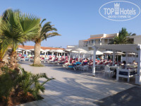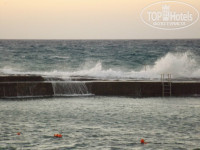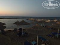 5) Пляж и море. Пляж отеля буквально через дорогу, песчаный. Отгорожен двумя волнорезами, волн там совсем нет, для детей - самое то. Вода чистая-чистая, гадов морских не видели. Правда, есть водоросли противные в некоторых местах. Лежаки и зонтики бесплатно для гостей отеля, свободные лежаки всегда есть. В близлежащем Медитерра баре по "все включено" можно брать напитки и морженое, нормальное в принципе, я дочке давала. Сам пляж достаточно чистый, изредка встречаются бычки, но убираются там однозначно.