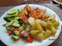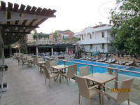 Постараюсь по сути и кратко: отель достоин своей 4*! Жили в 3-м корпусе, хотя первоначально хотели жить в 1-м. Слава Богу что мы не поменяли 3-й корпус и остались жить в нем!) Да, без бассейна, но тихо,чисто,уютно...никто не кричит под окнами, не заглядывает в окна, не слышно движения машин. Море очень близко, 5-7 мин. медленным шагом. Ресторан у отеля один, в 1-м главном корпусе. Кормили отлично, еды море! В номере: постельные комплекты чистые, но уже потрепанные...полотенца тоже просят замены, чистые - но изрядно изношенные. Есть чайник, чай и сахар, но запасы не пополняют... я брала с собой свой чай. Бар полный, но цены как вы понимаете... Мы с мужем не далеко от отеля покупали 1.5л. бут.воды за 1 долл.Если нужна замена полотенец, то я их оставляла скрученными в ванной под мойкой и не забывала оставлять 1 долл для горничной.Мыло в ванной жидкое и только возле раковины, лучше возьмите 1-2 брусочка с собой, иначе придется в душе мылить себя шампунем))) Персонал хороший! Улыбчивый, многие понимают русский язык. Полотенца на лежаки к бассейну платные, мы брали с собой свои из дома, брать из номера полотенца нельзя. Вайфай ловит во всем отеле, вайфай бесплатный, но слабоватый-для Одноклассников хватит))). Гид: спасибо Дана, все доступно рассказала, отзывчиво и профессионально! Летели от Пегас Туристик. Обязательно возьмите 2-х дневную экскурсию в церковь св.Николая и Памуккале! стоимость за 1 чел. 140долл, но это того стоит! Программа очень насыщенная! Советую так же экскурсию на подъемнике, мы встречали рассвет, к завтраку уже были в отеле, правда вставать надо очень рано, но фото супер!Стоимость с 1 чел 60долл. Обязательно с собой возьмите теплую одежду! на высоте 2365м можно околеть-без шуток, очень холодно! Были в бассейне Клеопатры...16 долл с человека...Мнение двоякое...вода в бассейне минеральная-термальная, но народу так много что чувствуешь себя как в страшном сне...и особого удовольствия получить мне не удалось...билет в кассе для взрослого стоит что-то около 3-5 долл, мы взяли билет у автобусного гида -поспешили - за 16долл с человека((( Ну, скажу так, отдых понравился, отель рекомендую. Будет возможность-поедем еще в этот отель. Обязательно попробуйте турецкое мороженое! 1 долл., 1 шарик-вкус-БОМБА! Желаю отличного отдыха!!!