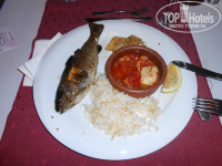 В отеле на 1 этаже находится большой уютный ресторан. Всегда есть выбор, где сесть - на свежем воздухе с видом на море или же в помещении. Официанты работают просто изумительно, не успеваешь освободить посуду - тут же унесут. А если закончился напиток, обязательно предложат принести еще. Они очень добродушны, приветливы. Большущее им спасибо))