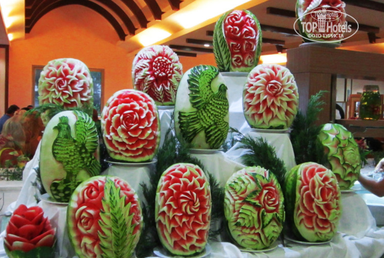 Питание: Еды достаточно, но все безвкусное, приготовлено на скорую руку, без изюминки. Есть главный ресторан, есть улица сиде где много разных "Кафе". В ресторане все обычно для Турции, на улице сиде в основном фаст-фуд. И на этой же улице очень грязно. Везде мусор, разбросана еда по полу, на столах мамаши пеленают своих младенцев. Поразили нас фрукты. В ресторане они все зеленые, не зрелые, на улице сиде они лучше, но их нужно мыть, там есть спец. раковины для этого. Много баров, но мы их не посещали т.к. не пьем)