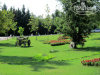 Территория: зелени много, цветов мало, повсюду под ногами мусор, плевки. Если около бассейнов дорожки моют, то на русском отшибе даже не подметают.
