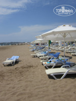 Пляж: песок не чистят, только мусор собирают, само море хорошее для тех у кого маленькие дети вообще хорошо, вход в море не опасный, ноги не больно не галька все таки, можно очень далеко зайти все мелко. Мест хватает, т.к. пляж большой. Плохо одно, курящие туристы. Там они всюду. Везде курят, везде дым. Везде окурки. Бывало, что приходилось менять лежбище из-за очередной курящей особы.