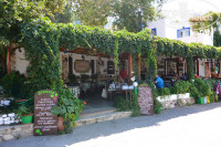 Брали машину напрокат за 40 евро +10 евро страховка на весь день, на ресепшен отеля на 10 евро дороже. На выходе из отеля есть 2 точки с прокатом - в магазинчике сувениров (цены приятные) и напротив стеклянный офис проката- мы там брали. Дают по российским правам, международные не нужны. Весь остров длиной 45 км можно объехать за час - дорога одна. Съездили в центр, побродили по развалинам, амфитеатру, прошли по сувенирным улицам к порту, посмотрели дерево Гиппократа, форт, поехали в деревню Зея- там отлично кормят, затарились био-кремами на оливковом масле и сувенирами. Закупались в турист-шопе "Катерина" почти на самом верху (девочки говорят по русски и отлично консультируют по косметике), кушали в таверне Дикалос - они напротив друг друга, пока готовили козу и кальмаров, я выбирала подарки и сувениры. Крем оказался таким легким и классным, что на следущий день опять поехали в Зею (15 минут езды по серпантину) но на такси (25 евро в один конец) и купили этой марки другие средства, даже мужу пену для бритья на оливковом масле. У меня кожа жирная, не все подходит, но крем из облепихи+оливковое масло меня покорил. Фирма Aromaesti.