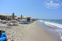 Море классное, Эгейское, очень концентрированное, пляж песочный. Удобные лежаки из искусственного ротанга. Лежаки стоят 3 евро в сутки, платили всего 2 раза, работник часто не подходил, ну а мы не навязывались. У моря бар платный, бесплатные бары у бассейнов, в лобби и вечером мы случайно зарулили в Gaia Palas 5* там играла живая музыка, была еда и напитки, посидели, выпили кофе, но потом мы поняли, что что-то не так - у людей на руках были браслеты, а у нас нет. Спросили потом у Светланы на ресепшен- она сказала, что это 5*, но нас тоже должны обслуживать, так как все включено. Кстати там у них есть Спа- центр, я сделала боди массаж за 40 евро 45 минут, есть разные программы на лицо, тело, рыбки педикюрные.