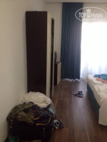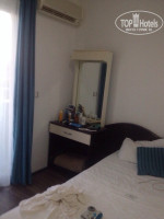 При заселении мы сразу решили "для верности" дать 10$, чтобы с номером потом не мучаться. В каком-то из отзывов я еще до отпуска читала, что сначала всех поголовно ведут в сто-какие-то номера, показывают откровенный ужас, а потом уже предлагают что-то пригодное для жилья. Так было и с нами: о первом номере стоит лишь сказать, что запах туалета стоял покруче, чем в любой общественной уборной в центре города, и мы благополучненько оттуда свинтили. Но зато вторая комната (у нас был номер 401) нам показалась раем. Балкон выходил на бассейн (из-за чего по вечерам было очень громко слышно дискотечную музыку, но это не особо мешало), а дальше было видно красивейшее море. Итак, в комнате было 2 кровати, разделенные тумбочкой, трюмо с выдвижным ящиком и зеркалом, холодильник, телевизор, шкаф. В ванной-душевая, унитаз, раковина зеркало, фен. Из неудобств: в шкафу только 1 перекладина с 10 вешалками и низкая узкая полочка, так что разложить вещи было просто некуда (мы повесили то, что нуждалось в вешалке, а остальное оставили в чемоданах); в ванной не было ни одной полочки, в общем, проблема у них с хранением вещей; еще в ванной душ очень сильно протекал, но поскольку прям на полу была дырка для слива мы подумали, что это нормально. Для тех, кому это важно: есть один условно русский канал, мне показалось, что-то вроде НТВ, но мы телевизор все равно не смотрели. При въезде было 2 больших полотенца и 2 маленьких. Важно учесть, что ни у бассейна, ни на пляже полотенец не дают и из номера брать запрещено, так что привозите с собой.
