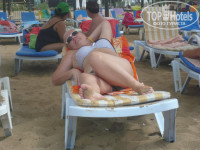 Приехала в этот отель с кузиной и ее внуком 10ти лет. Были в середине августа-жара страшная. Прибыли примерно часов в 10 утра и сразу же нам объявили ,что номер дадут не раньше 14часов. Правда после недолгих переговоров и небольшого вознаграждения, номер получили сразу, очень классный и даже все работало. Арендовали сейф, но показалось очень странным, что сейф не установлен стационарно, бери и уноси!!!! Видимо ,поэтому нам сделали скидку ,вместо 3х долларов в сутки 2, ну цирк!!! Номер - обычная четверка. как и везде. Убирали в номере нормально, повесишь табличку убрать - уберут и т далее... Теперь о питании, так как я много не ем и слежу за весом и моя кузина тоже ,нам было хорошо, но нашего пацана мы не знали ,чем накормить, с мясом напряг полный , может надо его было караулить . но не жрать же мы сюда приехали, в общем парень наш был полуголодный. Кто едет с мужчинами, хорошо подумайте, желает ли ваша половинка похудеть! Персонал отеля ненавязчивый и очень приятный, что спросишь , помогут, не хочешь не лезут. Территория отеля маленькая ,на первый взгляд , вполне чисто, не заглядывая по углам. особенно на бассейне, без обуви страшно ходить!!!! Пляж тоже не очень чистый, но за то пологий вход в море и песочек. Лежаков всегда хватало, но полотенца надо везти свои. А за анимацию я хочу лично заступиться! Всего два аниматора, но делали ,что могли, разрывались и волейбол на пляже устроить и в дартс на бассейне надо и в водное поло и на вечер надо записать желающих участвовать в конкурсах, а никто не желает, а надо уговорить. Особая благодарность аниматорам Фуату и Мурату, развлекали нашего пацана, что он уезжать не хотел! Отдельное спасибо диджею Джолику за прекрасную музыку. В общем , если бы не добряга Джолик, умница Фуат и красавчик Мурат, от скуки в отеле можно было бы повеситься, вот как то так!!! Вывод: везде свои минусы и плюсы, можно ехать тому, кого интересует море, солнце, песок и активный отдых, а не тупо жратва и еще раз жратва.