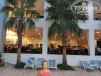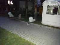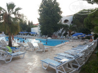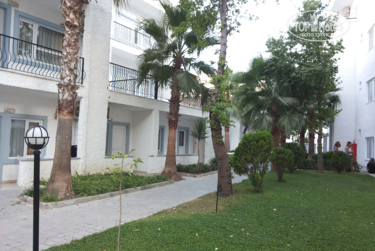 чисто, аккуратно, много зелени, корпуса 3-4 этажные по всей территории, бассейн для взрослых и малышей и бассейн с небольшой горкой которая работала по пару часов в день. От бассейнов очень воняло хлоркой и было жаль тех отдыхающих которые променяли классное море на бассейн с хлоркой. Территорию около бассейна моют каждое утро так же как и всю территорию отеля поливают водой и подметают. На территории много кошек интересной породы с острой мордочкой.