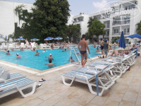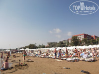 Лежаки на пляже - достаточно погулявшие - половина поломанная. матрас на нем полуразлезшийся (по сравнению с лежаками дугих, рядом стоящих, гостиниц - это капец! Чистота пляжа оставляет желать лучшего. ВОдоросли, собаки, бычки (сигареты) стаканы.