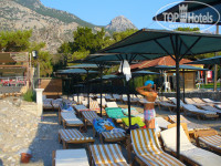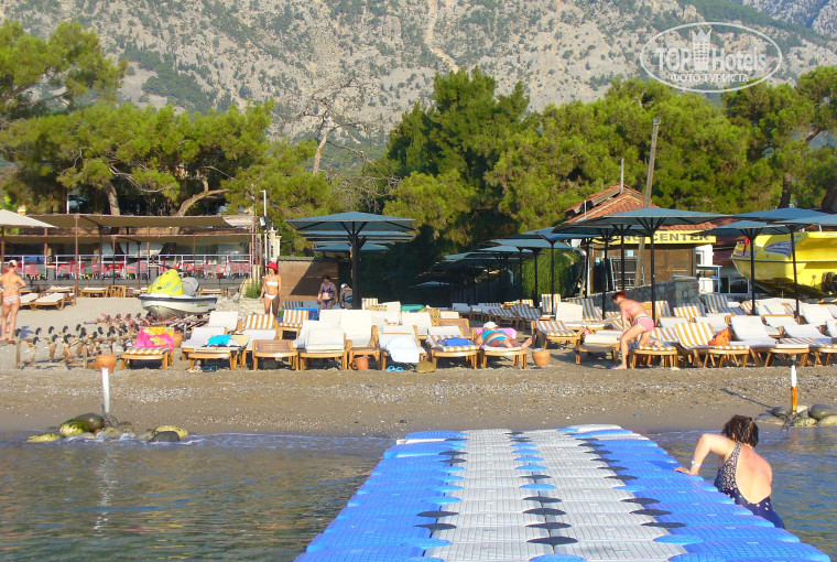 2.Пляж. До пляжа идти 5 минут : 100 метров по улице, после мечети в переулок и по нему до пляжа. Переулок естественно не впечатляет красотой, если не сказать большего. Пляж – это полоска песка шириной метров 10, непосредственно у моря 15. Вода прозрачная, чистенькая. Вход – мелькая галька переходящая в валуны. Есть понтон. Небольшой, подняться на него только с берега, лестниц нет, можно подняться со стороны моря, наступив на трос держащий этот понтон. Бара на пляже фактически нет – это не бар, а пункт самоналива напитков из автомата (простите за каламбур). С утра часов до 9 места есть у моря. Гулять по пляжу вдоль отелей никто не запрещает. Даже купаться в море у соседнего отеля можно (если не лезть на понтоны), что мы и делали, когда было много народу. Наш пляж - самый плотный!!!! Лежаки бесплатно – полотенца или свои или брать в аренду – из номеров нельзя!
