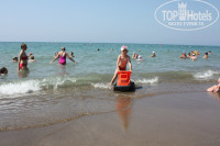 Пляж довольно большой. Ни разу не ходили занимать место заранее, потому что они всегда были. Что очень удивляло при загруженности отеля свободные места были всегда и везде . И на пляже и у бассейна и в ресторане. Пляж убирается. Песок вечером выравнивают. Вход в море нормальный . Сначала небольшая галька, а потом песок. На пляже есть детские игрушки, так что с собой можно не брать. Это плюс отелю. Кстате никакие медузы нас не кусали. Наверно нам сильно повезло или их вообще нет.