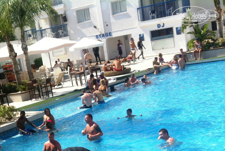 Был в этом отеле в июне 2013 г. Это один из самых недорогих отелей в Айя-Напе. До пляжа далеко, зато рядом улица баров, музыку с которой была слышна в номере, от нашего корпуса метров 60. Это отель для тех, кто приехал в первую очередь тусить, а во вторую купаться и загорать на море, для тех, кому не важно, как выглядит номер и красота территории. Отель небольшой, маленький ресепшен, территория, состоящая из несколько бассейнов и 2-х баров. Днем очень много народу тусит около бассейнов, играет музыка, а вечером практически никого нет, все уходят на улицу баров. Корпуса отелей находятся вокруг бассейнов, ограничивая его территории, но есть и стоящие в стороне, на городской улице. Один бассейн с баром находится немного в стороне, через дорогу, там обычно меньше народу днем и есть свободные лежаки. Вай-фая отсутствует. Большая часть постояльцев – это англичане, в основном студенты. В 15-20 мин. ходьбы от отеля был небольшой пляж, но мы предпочитали ездит на автобусе на знаменитый пляж Ниси-Бич. Пешком далеко. В номере была электроплита и посуда. Полотенца и белье меняли раз в 3 дня или даже реже. Так что не кидайте на пол грязные полотенца, если время не подошло их все равно не поменяют. Окна из номера выходили на переулок по которому народ, с орами и смехом вечером шел на улицу баров, а под утро от туда возвращался, но это нам не мешало, мы сами приходили под утро.