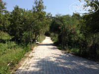Территория - просто офигенная! Какой-то райский сад куда не глянь. Все очень грамотно и радует глаз. За территорию - из 5-ти баллов поставил бы 7 :) Да и дорожка к морю не напрягает, идешь 5 минут и разглядываешь тропический лес (кстати крабиков надо высматривать тихо, я каждый раз шумел и они прятались в норки по краям дорожки.) Первый выход к морю из леса тоже впечатлил - все красиво, чистенько, есть душ, бар с перекусами присутствует, а пляж и море оказались совсем не такими плохими как их описывали во многих отзывах. Ну да - камушки на входе есть, но не так много и там их всего метра 2-3, потом песок, мы купались справа от пирса - сын все время был в спец-тапках, а я проходил камушки и выкидывал сланцы на берег, было даже прикольно. Писали про волны - ну так нам только понравилось! С утра штиль, ближе к обеду среднее волнение, сыну купили надувной жилетик - он был в восторге от волн! Познакомился со сверстником и вдвоем они прыгали прямо с пирса и вообще зажигали не слабо на море, особенно после того как я купил им водяные автоматы. Жена загорала, проблем с лежаками не было ни разу. Они с сыном вообще обедали через раз на пляже, им хватало за глаза. Чуть правее есть бесплатные байдарки и катамараны, катамаран не брали, а мимо байдарки я как рыбак пройти не смог - пару раз катался, удобная оказалась вещь, кайфанул не слабо. Водоросли немного были после обеда, но их мало и они не мешают (по сравнению с нашей Волгой даже смешно об этом говорить).