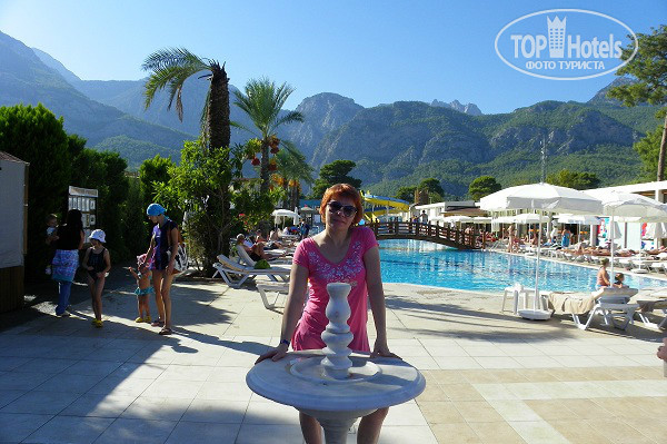 Отдыхали в октябре с 10.10. по 15.10. 13г. Повезло с погодой. Приехали в отель около 12 дня, заселили не сразу, к 14-00. дали номер на 5 этаже, чистый, всё работало, с видом на горы, частично на море. Расположение отеля по моему мнению удобное, удалено от зоны анимации, развлечений, спали спокойно в тишине с открытым балконом. Территория большая, ухоженная, много всего интересного, есть где погулять, уединится. Вид с территории на горы потрясающий, это надо видеть. Питание разнообразное, всего много, всегда хватало, спиртное на любой вкус, все описывать не буду, в очередях не стояли, голодными не были, персонал работал четко, убирали со столов быстро во время, молодцы. Анимация просто супер, особенно вечерняя, огромное спасибо Хасану за великолепное шоу!