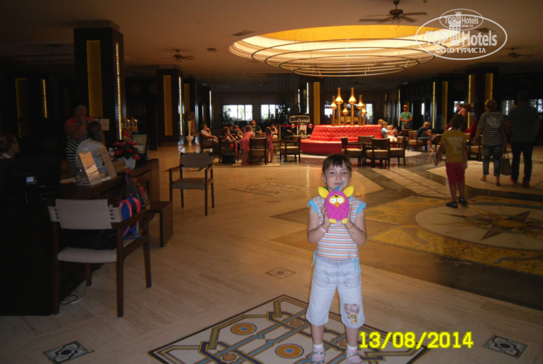 Отдыхала с ребёнком (5-лет), с 13.08.2014- 22.08.2014. Прилетели утром, в отель прибыли около 10 утра, после оформления, отправили на поздний завтрак. В 12 часов проводили в номер. Номер 1608 очень понравился, на шестом этаже основного корпуса, большой лоджией с двумя лежаками, с видом на море, бассейны, горки. С большой 2-ух спальной кроватью, кондиционер, фен, телевизор, розетки, сантехника и т.д. всё было в рабочем состояний, только холодильник не работал, починили сразу, после звонка.