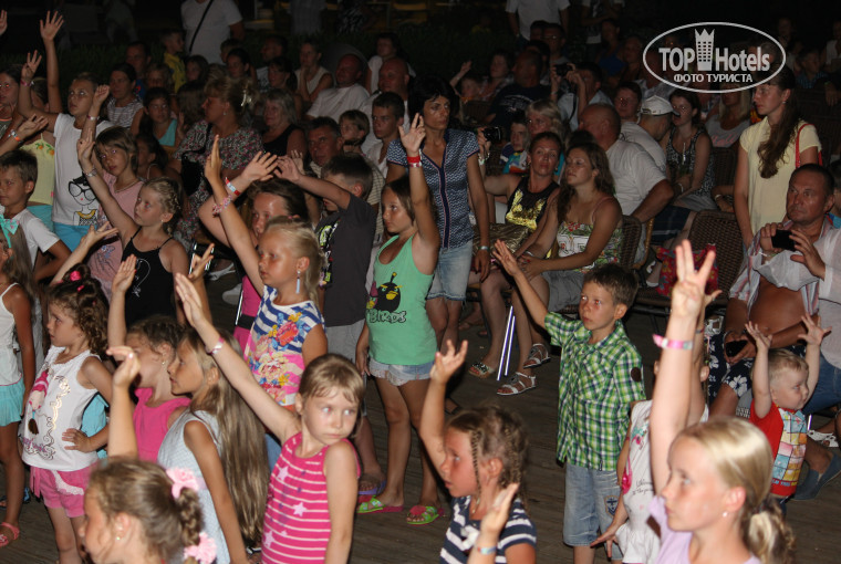 сразу хочу выразить огромную благодарность всему персоналу отеля, от управляющего до обслуживающего персонала, за то что сделали наш отпуск и отдых на все 100% замечательным. Размещение-отличное,чувствовали себя как дома,очень уютные номера,приличная мебель,душевая,несколько рускоязычных каналов по ТВ,звукоизоляция-отличная,никто друг другу не мешал,ночью-тихо и спокойно.Заселили как и полагается в 14 00. Уборка отличная.Плюс ко всему-территория отеля-большая.зеленая.очень ухоженная,здесь вырастили и бананы и гранаты и кедры и финики и инжир,всего не перечислишь. Очень очень красиво. Есть где погулять и сделать замечательные фото. Во все этой красоте вольготно себя чувствуют белочки,черепашки,ежики ,кошечки .птички. Видно как здесь всем хорошо. Питание-отличное,есть все абсолютно,даже детский стол с диетическим питанием,можно и молоко свежее найти здесь и разогреть при желании. Здесь даже перечислить невозможно все. Лично я очень полюбила местные супы. Официанты работают так,что удивляешься их проворности,терпению .стойкости и услужливости. Попробуйте-ка на 40 градусной жаре побегать 2-3 часа и всем угодить при этом. Спасибо им отдельное! Анимация-нет слов-супер! И детская и взрослая.Праздник каждый день. Дети как на работу-на дискотеку. В клуб ТУКАН- как на праздник! Сколько интересных занятий там,на любой возраст,всего не перечислишь. На взрослой -днем игры в бассейне очень нравились,вечером выступали профессионалы,здесь каждый найдет себе что то по вкусу. Очень понравился главный ведущий (кажется Али его зовут),очень приятный молодой человек с удивительно приятной пластикой и очень юморной. Очень понравилось что вся анимация в основном на русском языке( в отличии от других отелей), вообще очень приятно удивило,что в этом отеле всюду говорили на русском,да и отдыхающих-90 % -Россия. Всем аниматорам -огромное спасибо Пляж-огромный,всегда чистый,лежаков-всегда хватало и в обед и вечером-всегда. Море -конечно не как в Кемере- рыбок мы не видели и нырять с масками желания не было-все таки песок ,волны,большое количество людей и все это бурлит вперемешку с супер соленой водой. Единственный плюс- песчаное ,пологое,ровное,без камней дно,метров 5 от берега-пространство для детишек,что выгодно отличается от Кемера,где 2 шага и буль-буль. Не приветствовала никогда на курортах купание в бассейнах(едешь то ведь на море),но тут пришлось уступить,полдня проводили в бассейнах,дети очень любят нырять и искать клады,в море это нереально было осуществить. Но бассейны-на любой возраст,с разной глубиной,и бассейн с горками очень понравился. В принципе никакой заразы там не было,наши дети и захлебывались не раз ныряя,да и пробы воды там по несколько раз в день проводят. Единственное чем все наши дети(и не только наши) там болеют-это перегрев на радостях .с обязательным поеданием мороженого. Совет - днем( в солнцепек) лучше вести ребенка в дом и не давайте холодного морож. на жаре.СПА тоже очень понравился,массаж брала лимфодренаж-итог -5 кг. Массажист понравился-Сердар,профессионал . Массаж.Хамам,сауна ,бассейн,аквааэробика- скинула 10 лет!! И настроение на 5+! Хочу посоветовать парикмахера при отеле,зовут Хакан. Это просто находка! За недорого он приобразил всю нашу семью и семью наших друзей. Мы положились на его вкус и он нас так изменил!! Что мы теперь без него 