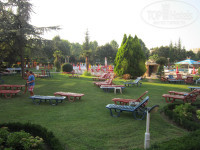 Отель Расположен удобно, до моря идти 10 минут, если вы на костылях и 4-5 минут если вы здоровый человек. Сама гостиница видна с пляжа, дорога к ней пролегает мимо всяких тогрушек и большого супермаркета. Сама территория ПРОСТО СУПЕР! Это скорее всего самая большая территория на этом курорте (мы гуляли по другим отелям и смотрели). Многоуровневой бассейн огромен! Максимальная глубина 1.80 см, есть зоны для купания и для самых маленьких! (большие зоны) Вода очень чистая, правда утром немного прохладная. Огромное количество зелени, высокие деревья, кусты и тд. Видна хорошая работа ландшафтного дизайнера. Есть большая детская площадка. Батут, два теннисных корта(большой теннис), джакузи и бильярд за отдельную плату, но не дорого. Единственное что бесит, это люди которые как дикие бегут занимать шезлонги, а потом сваливают на пол дня! Шезлонгов много, но человеческая жадность - безгранична! Поэтому когда мы не могли найти свободный шезлонг, мы вежливо просили секьюрити и они с радостью освобождали нам "занятые" шезлонги! Я не любитель отдыха у бассейна, но очень приятно в полуденный зной, лежать в тени хвойных деревьев попивая ром.)))