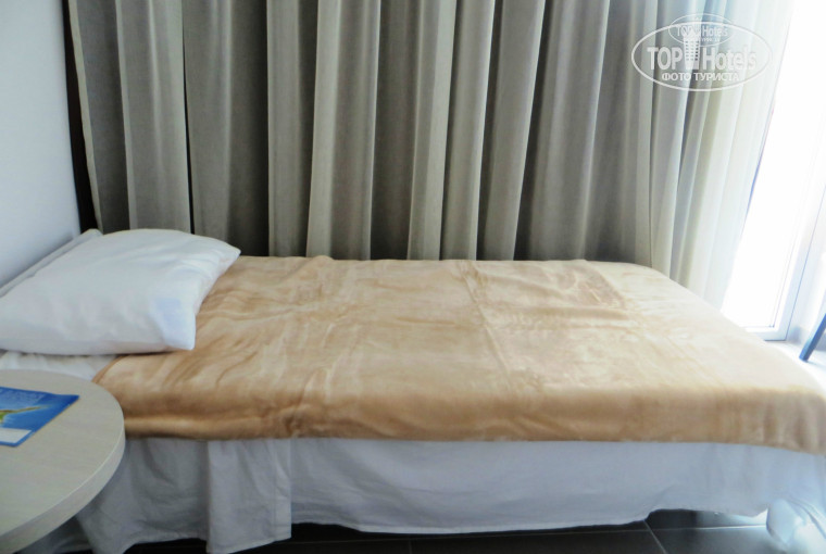 Назову, пожалуй, единственный минус для нас в этом отеле (ездили втроем - с сестрой и сыном) - в отеле нет трехместного размещения. Дают раскладушку (ну, не совсем раскладушка в нашем понимании - скорее, небольшой и жесткий топчан) - см. фото. Это несколько испортило впечатление, так как Пегас клялся, что будет не экстра-бед, а полноценная кровать. Но....нет.