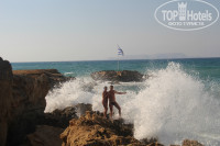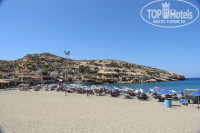 Отель расположен удобно от аэропорта, в 15 км. От Ираклиона. Но далековато от магазинов. Удобно - море прямо у отеля через дорогу (узкую). Мы прямо в купальниках и босиком переходили без проблем. Пляж - песок, хотя, пройдясь по побережью, увидели что большая часть пляжей - камни. А половина нашего отпуска был шторм, на камнях не покупаться, а мы с радостью прыгали на волнах. Вход в море ровный и не длинный, т.е. через 10-15 м стоишь по грудь. Лежаки все старые и за пляжем не следят. Рядом расположен городской пляж с платными лежаками, там бегал мужчина, немного прибирал.
