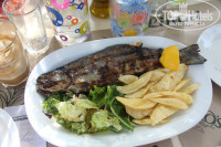 По питанию. Здесь принцип, кто не успел, тот опоздал. Блюда в принципе как и везде. Свинина, курица, иногда баранина, которая нам досталась только пару раз. Мусака - два раза была безвкусная, потом нормальная. Спагетти, рожки, картофель жареный во фритюре. Баклажаны, кабачки - тоже безвкусные. Один раз было пюре очень вкусное, даже, как нам показалось, с маслом. Утром яичница или омлет, сосиски соленые, фасоль в том.соусе, сыр, колбаса (никакая), но когда мы брали ее в дорогу, уминалось за милу душу. Йогурт вкусный, каша рисовая тоже, овсяная нет, хлопья нехорошие. 3 вида джемов и мед очень вкусный. Несколько раз были круасаны вкусные, но хватало на очень мало времени. Чай невкусный из-за воды. Видимо они использовали не питьевую воду. Кофе - потянет. Соки вообще барматуха какая-то, сын пил лимонад. Пиво, вино нормальное. Бренди иногда разбавленный. Узо. Его не забавишь. Сладостей было по паре видов, но хватало не на долго. На завтрак никаких булочек блинчиков в помине не было. На мангале ничего не жарили, кроме Критской ночи для отдельных личностей. Другой анимации в помине нет. Но голодными никогда мы не оставались. Просто при системе AL вроде всегда все достается. Опять же полезней для фигуры ))).