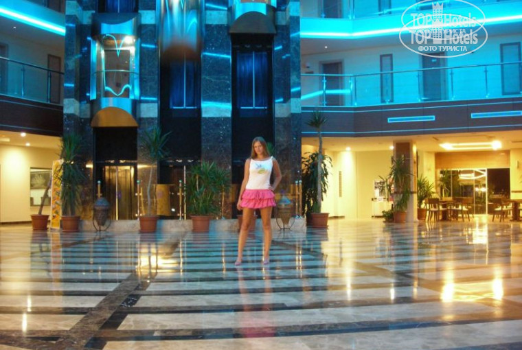 Плюсы: Красивый холл, подсвеченые неоном ярусы, 3 прозрачных лифта-капсулы, проблем с очередями нет. Большие номера, тоже с неоновой подсветкой. То что отель довольно новый, чувствуется сразу. Нет обшарпанностей. Вкусная и разнообразная еда. Красивый закат в море.