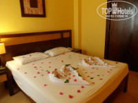 за стойкой был араб,который говорил только на англ или на арабском..русского он не понимал...там же познакомились тоже с молодой парой и решили вместе разделить так сказать грусть...подошли к этому арабу, чтоб он дал нам номер...он сказал,что мы ему понравились очень..,что "френды" и даст нам (2-м парам) 2 хороших номера и намекнул на чаевые...мы сразу же ему показали,что написано в ваучере и дали понять,что платить не будем! нам достался номер 5888...сразу скажу, что номер по сравнению с внешним видом ресепшена показался просто чудесным....