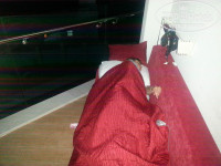 4)После моего обращения что номер очень прокурен (и это мое мнение и токсикоз тут не причем) и обращение было очень культурным, но мне сказали что извините но вам придется переночевать поскольку номеров свободных нет. Я им говорю что даже мне першит в горле от этого запаха, а не говоря про беременную жену. (Говорил что дам вам денег или вознаграждение если переселите, не требовал даже вид из окна). Жена в итоге сказала что спать в номере не может, пришлось красный диванчик вытащить на балкон чтобы она спала на улице.