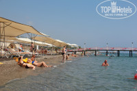 По пляжу и морю. До пляжа идти минут 5 где-то. Это не напрягает абсолютно. Пляж небольшой, но лежаков свободных всегда было достаточно. У лежаков песок, при входе в море мелкая галька. Море очень чистое, прозрачное и теплое. Иногда покусывали мелкие рыбки за пятки ))
