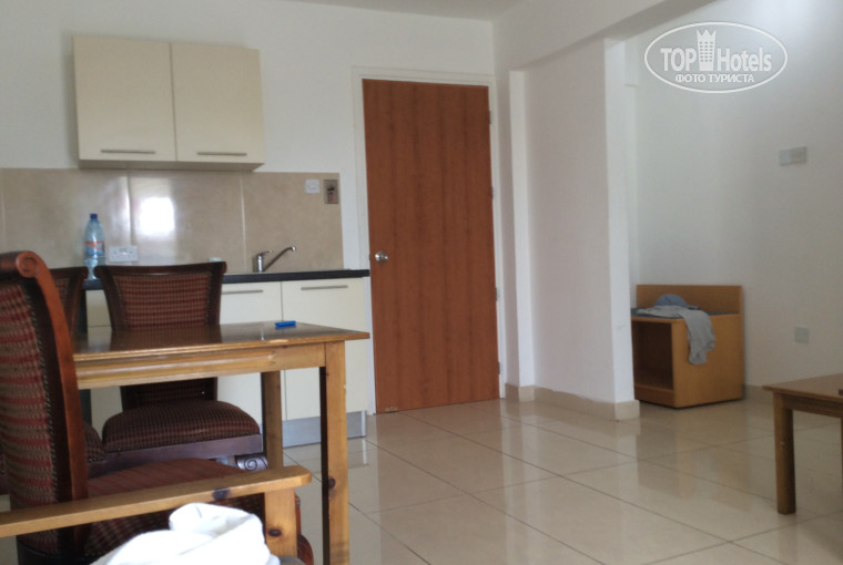 Так как мы приехали рано, а заселение только с 14 часов, нужно было подождать, но мы решили этого не делать а дали на ресепшене 10 евро и нас заселили буквально через 10 минут в номер главного корпуса, номер 1012. Номер состоял из двух комнат, первая это кухня с телевизором ( один канал русский - планета РТР ), диван, кресла и стол со стульями. Вторая комната спальня с кроватью и шкафом. Вобщем неплохо, чистенько аккуратненько.