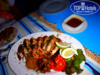 Наталья, в рыбном ресторане подают уху из рыбы, кальмара и краба, причем краб там в виде клешни, эффектно. Потом салатик легкий(огурец, помидор, зелень). А потом тарелка с темным рисом и тигровыми креветками, обжаренными в каком-то соусе и зелени, к ним еще местный соус подают(креветки есть на фото прикрепленном). Еще подают вино или пиво. Все это под три представления- танец живота, заклинатель змей и кружащийся человек(он минут 15 кружится вокруг своей оси, словами не передать). Все очень вкусно и красиво, даже раздумывали еще сходить