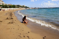 Пляж - песок, местами встречаются камни. Метров 500 глубина по плечи. Минус пляжа - много водорослей, которые засоряют берег. Но слева от пирса есть пляж пятизвездочного cristal sunset queen, чистый и лучезарный. мы там купались. И вам советую идти туда.