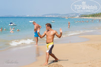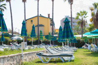 Пляж отличный-песок и вход в море песок,лежаки стоят друг к другу не близко, волны появились в сентябре,но не очень большие,на Клеопатре больше в разы. Полотенца можно получить в сауне только один раз с 8 до 11 утра, а сдать его нужно до 18,30.