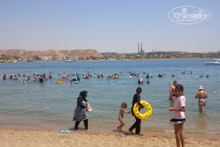 Бесплатный ПЛЯЖ в 15 мин езды, расписание автобуса не удобное (первый рейс из отеля в 9 утра, последний с пляжа около 17:00). Территория пляжа маленькая, народу полно (опять-таки одни арабы), мелко и сразу буйки. Выхода на открытое море не видно, т.к. пляж в бухте.