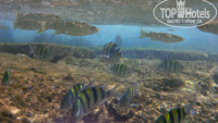 ПЛАТНЫЙ ПЛЯЖ в 600м от отеля, 2дол с человека за весь день. Там всё отлично - море с кучей рыб, народу не много. Входа в моря 2: 1. лестница в море сразу на глубину (не удобно в "час пик" - много народу идет купаться, на этой лестнице "пробка"); 2. лестница в море на риф, по нему многие ходят в спец.обуви, мы ходили босиком, не поранились, там сразу рыбы.