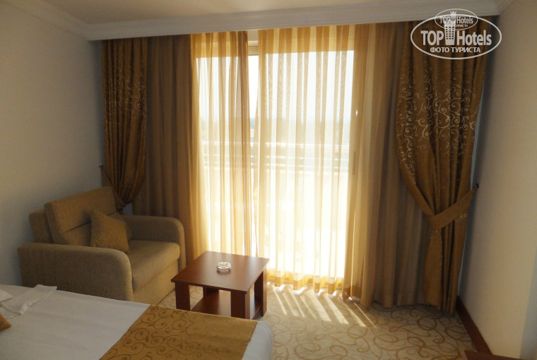 Теперь -. Заход в море ужасный!!!!!!!!!!!!!!!!!!!!!!!!! Камни большие, даже порезал себе ногу. Есть пирс для любителей попрыгать, и спуститься, море и пляж не убирали вообще грязно. Анимация детская скажем так не очень, каждый день 3 одних и те же танца и все. Взрослая анимация есть, но так как господин турок объявлял её так что вообще ничего не было понятно то и никто практически не ходил на нее((( но были выезды на дискотеку в аланию, вообщем развлекали себя сами, благо днем было водное поло хотя бы изредка и то организованное самими отдыхающими. брать экскурсии у отельных гидов нет никого смысла в 3 раза дороже можно выйти за пределы отеля и еще и поторговаться.
