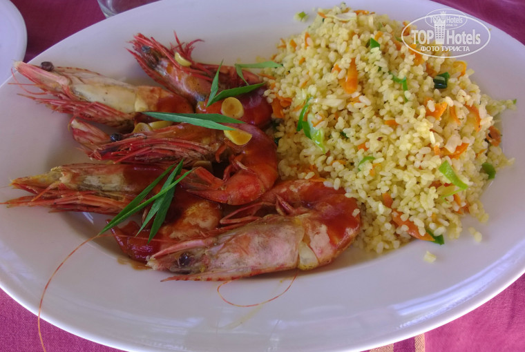Питание брали HB, все было очень вкусно,много морепродуктов,рис вообще вне всяких похвал. Напитки на завтрак-бесплатные,на ужин-платно.На ужин брали с собой водичку.Алкоголь покупали в магазине в 15 минутах хотьбы от отеля.Выходили на главную дорогу и налево до ларечка с решеткой.Обедали в кафе на пляже или просто покупали фрукты.Обед в среднем обходился в 15-20 долларов на двоих (рис или картофель фри,креветки,салат и напитки).В последний день заказали креветок джамбо в Тартаруге,одна порция 18 долларов,попросили нам разделить на две тарелки,гарнир и салат принесли как на целую порцию.Одной порцией наелись до отвала.