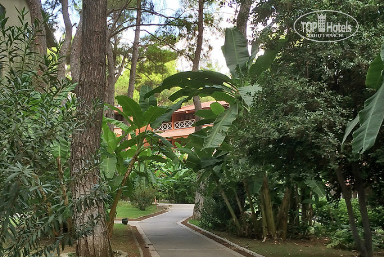 Территория отеля очень зеленая много деревьев разных и кустов, прям как в лесу живешь.