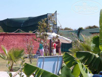что тут скажешь, территория маленькая, отель среди кактусов и пустыни :) (египет прям) рядом домики местных жителей, кладбище, за кладбищем свинарник или коровник (воняло), раз в неделю приезжает рынок на поле, море как море солёное :) вход в воду из 50 метров гальки 2-3 метра есть песок, номера были чистыми, залог за пульты не оставляли всё и так было, в номере все работало, с балкона на балкон жали соседу руку :) гиды как везде ублюдки - рассказывают что вас везде кинут только я хороший! жратва вроде в норме ниче сверхестественного, правда дожрать бывало не успеешь как стырят тарелку. Посуду правда мыли крайне херово, пляж убирался также, так как много русских (99%) - народ бычки где потушил там и бросил, бывало и битое стекло от разбитых стаканов. Развлечений у моря только от отеля, а так как до ближайшего отеля не меньше 5км цены они ставили какие им хотелось, никакой конкуренции. Анимация за неделю не повторилась ни разу... Аниматор грузин работал по радио микрофону и бывало сидишь у столовой у бассейна, а в амфитеатре идет какая то программа и смотришь херак пришел херов аниматор сидит глушит водяру и трепится себе по микрофону, о как!!! а там люди хлопают...