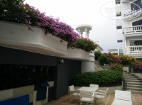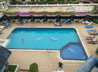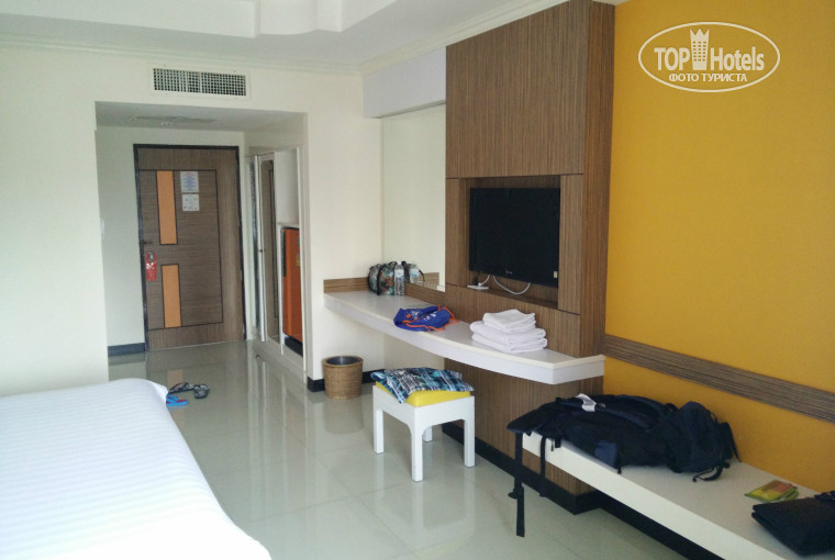 Номер оказался с видом на бассейн. Довольно просторный. В номере шкаф для одежды (вешалки там "антивандальные"), холодильник, телевизор (два русских канала "первый" и "НТВ"), помимо кровати был ещё небольшой диванчик и столик (кушать за ним не очень удобно, хотя в номере мы кушали всего лишь пару раз;мы нашли выход:скинули подушки на пол-оказалось вполне даже ничего),туалет (он же биде) и ванная вместе,кондиционер. В туалете подтекал бачок около ручки смыва, но это не страшно, т.к. в полу есть сливное отверстие. Кстати интересно зачем оно, если душ и ванна два в одном. Наш номер, 430, оказался единственным у которого на балконе не было кондиционера (т.е. он не будет гудеть под "ухом" когда вы спите). Но балконом это назвать трудно, мне кажется он исключительно для кондиционера, хотя меня это не остановило и я вылазил в окно на этот балкон курить) Из сейфа в номере никогда ничего не пропадало. Каждый день давали 2 бутылки воды, но мы не успевали их выпивать, т.к. почти каждый день покупали воду на прогулках в 7/11 или Family Mart. Стоит вода копейки, от 8 бат за 0,5 литра. Купите веревку, нет, не вешаться, а сушить белье, так просто негде, веревку можно привязать на балконе.