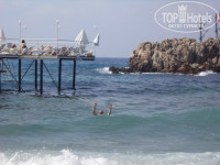 На море я отдыхаю не в первый раз, но отдых в этом отеле мне запомнится надолго, номера конечно небольшие, но очень уютные, а какой вид. Из моего номера было видно буквально всё: море, горы, пляж, бассейн. Очень красиво. Особенно мне понравился персонал этого отеля. Там все работники не боятся проявлять инициативу, так что анимация там даже не нужна. Они мало того что выполняли свои обязанности, но ещё и на дискотеках умудрялись сделать так чтобы практически все танцевали. Да и не возникало желания сидеть на месте, когда например одна из сотрудниц собрала всех отдыхающих танцевать ламбаду. Так же мне нравилось смотреть за тем как они танцевали под турецкую музыку. Настолько приятная обстановка, что даже практически все отдыхающие сплотились, общались даже не смотря на возраст, национальность или если разговаривают на разных языках. Никто из работников не позволит вам грустить, если нет настроения и ты например сидишь на ресепшене, вас обязательно подбодрят веселой шуткой. Первое чем следует гордиться этому отелю это конечно персонал! Второе это конечно же, то как там кормят туристов. Правда, кормят очень вкусно, еда вроде бы и обычная, но вкус это нечто! Я сама ем немного, но там у меня постоянно была полная тарелка, иногда даже ходила за добавкой. И ещё пару раз брала с собой в номер. Поправилась на три килограмма, я правда там ела очень много. Потому что это всё просто было невозможно не попробовать, а когда попробовал уже невозможно остановиться и не важно наелся ты или нет! Хотя я в еде очень привередлива. На пляж там можно добраться двумя способами: на лифте и по лестнице. Лифты очень хорошо оборудованы, но я всё же предпочитала ходить пешком, просто так гораздо интереснее, да и когда стоишь на мосту отель выглядит очень красиво, а про пляж и море я даже и говорить не буду какой великолепный вид. Кстати о пляже. Пляж был довольно интересный, с одной стороны моста если заходишь в море там мелко, с другой глубоко. В общем на любой вкус. В номерах после уборки когда заходишь невозможно сдержаться чтобы не воскликнуть:"Ах" до такой степени оригинально сложены полотенца. В общем отель очень хороший, пожаловаться не на что. Не знаю как другим, а мне очень понравилось и я обязательно приеду туда ещё раз!