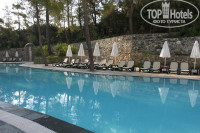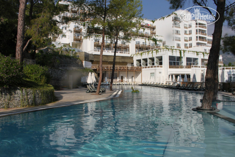 Территории ну ОЧЕНЬ зеленая, красота, сосны, горы рядом все утопает в зелени. Понравилось, что в отели разноплановые пляжи, и мелкая галька с песком и пантон и дикий пляж с крупными камешками. из за этого нет толкотни все рассредотачиваются по интересам и дети чужие не напрягают. Возле каждого пляжа и бассейна туалеты и бары, так что не надо бегать из одного конца отеля в другой, да и бумажные стаканчики не напрягали вообще, почитаешь, ну прямо трагедия) море очень чистое и теплое, не надоедает хочешь волны хочешь без волн, на любой вкус.