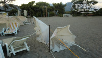 ПЛЯЖ: Это вообще не для слабонервных! В куче хабариков очень сложно найти было песок (на фото с зонтиками хорошо видно). Сломанные зонтики, которых вечно не хватало. Море утром наичистейшее и к 5 вечера уже все загаженное одноразовой посудой, пакетами полиэтиленовыми, женскими прокладками и т.д. Так что только по утрам и было желание входить в море. Кстати, у соседей и с зонтиками и с чистотой пляжа было все намного лучше. Правда море и у них было одно с нами. Еще на этом пляже живет свора собак, которые постоянно бродят между лежакими или залезают покупаться в море вместе с людьми.