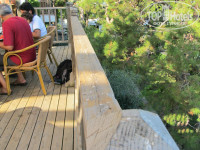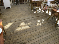 Состоит из крытого павильона и полукрытой зоны с деревянным полом. Принимать пищу можно только в крытой части павильона, т.к. в полукрытой очень много ос, плюс к этому постоянно залетают голуби и воробьи (клюют еду из тарелок оставленных без присмотра, перильное ограждение и крайние столики загажены птичьим помётом).