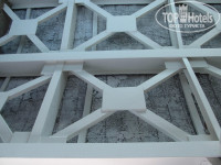 Небольшая (в длину метров 200), узкая, вытянута вдоль береговой линии. Очень много лестниц с неудобными ступенями. По нулевому, первому и пляжному ярусу есть дорожки. Много растительности, много сосен. Очень много статуй и картин. Есть три лифта (один возле центрального бара, второй лифт-маяк (внутри сэкономили на штукатурных работах) для спуска к пляжу, и третий лифт в новом корпусе). На территории отеля я насчитал аш 6 бассейнов (возле из одного бассейнов есть мачта как на кораблях с флагами разных стран, российский флаг среди них позорно спущен вниз).