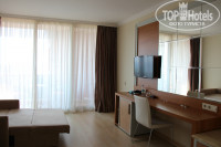 2) Заселение отдельная тема - у нас прошло все плохо и это сразу омрачило наше первое, пожалуй самое важное, впечатление об отеле!!! После долгой дороги, с малышом на руках, после 2-х часового ожидания номера, нам выдают номер 5100 на 5 этаже, двухкомнатный Family - сам номер чистый, аккуратный, все работало, НО... одно окно практически полностью перегорожено парапетом крыши, а второе вообще выходило в какую-то шахту здания - вот тебе и проплаченный вид на море!!!! Я была в шоке!!! Пошли просить другой вариант - на встречу не пошли, сказав, что абсолютно все номера данной категории именно такие и есть!!! Предложили денег, начали потихоньку шевелиться, но предложенный обычный стандартный номер, нас не устроил (там было бы негде поставить вторую детскую кровать). Остались на 5 этаже с обещаниями переселить нас через неделю. Через неделю дали хороший Family №2235 (Заметьте - на 2 этаже вдруг нашелся). Выставляю его фото, так как первый номер я не фоткала (не люблю запечатлевать недостатки).