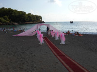 Море просто сказка. Берег- мелкая галька(фото прилагаю)Пляжу присвоен голубой флаг.Лежаков всегда хватало.