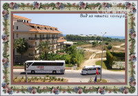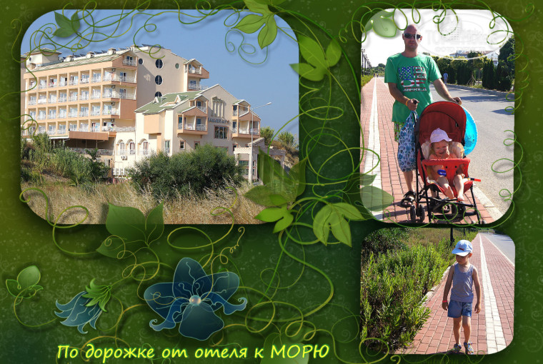 До пляжа 300 м как и обговаривалось заранее, нас это не смущало, прогуливались с коляской 5-10 мин. Небольшой автобус до пляжа и обратно ходит часто, при желании можно и на нем.